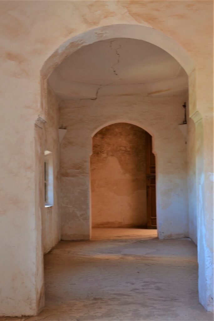 Gesso, piastrelle zellij e disegni colorati sono i protagonisti di queste sale. Sulle pareti esterne, le grandi finestre, con inferriate lavorate, affacciano su un panorama mozzafiato.