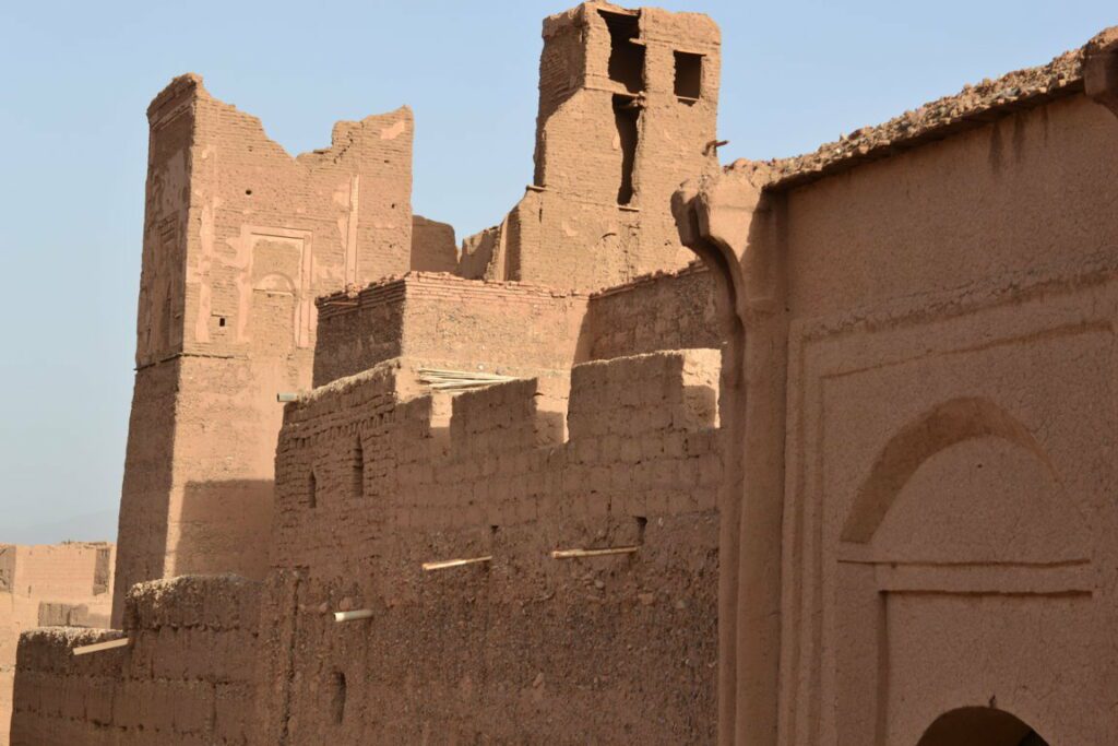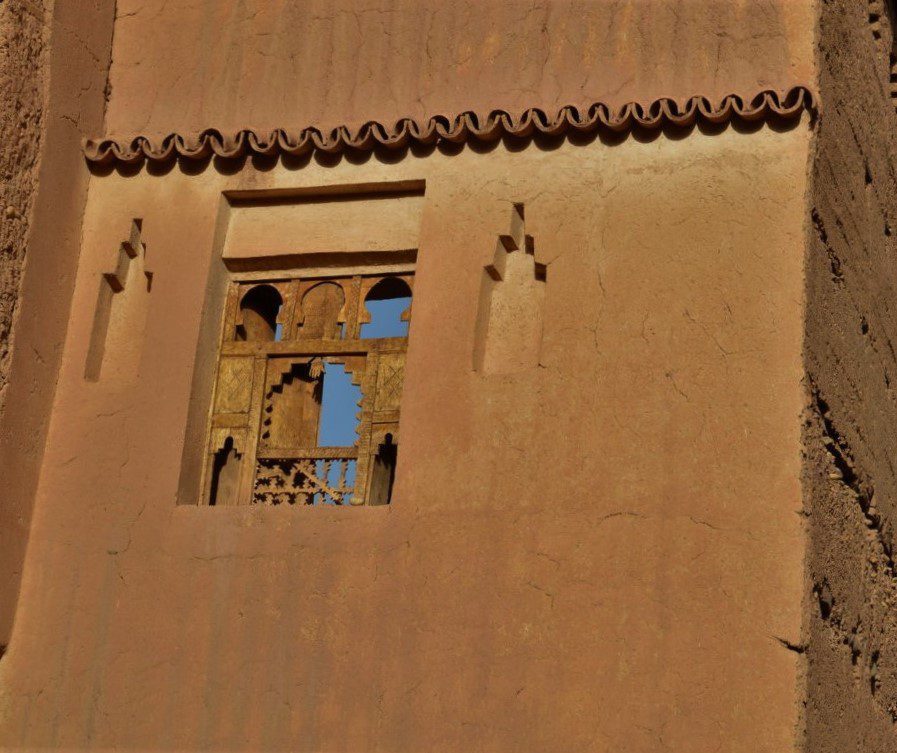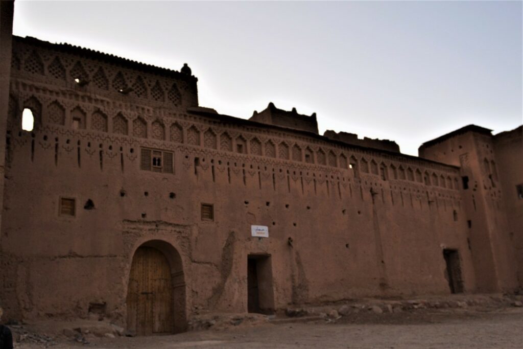 È circondata da bastioni costruiti in “adobe” (la miscela di paglia e argilla) ed è caratterizzata da 4 (quattro) porte di accesso allo Ksar.