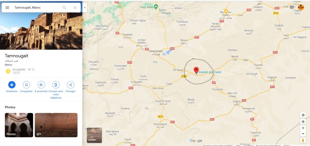 Tamnougalt è un’oasi di palme da dattero, situata nelle montagne dell’Atlante, all’interno della Valle del Draa, dove scorre l’omonimo fiume. Dista circa 95 km da Ouarzazate, a Sud di questa città, ed è prossima al villaggio di Agdz.