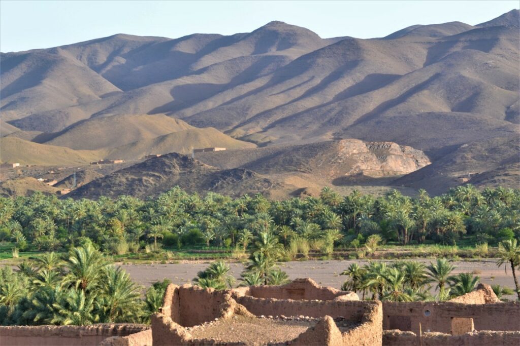 Dallo Ksar si accede ai giardini sottostanti e all’immenso palmeto che cresce lungo il fiume Draa.